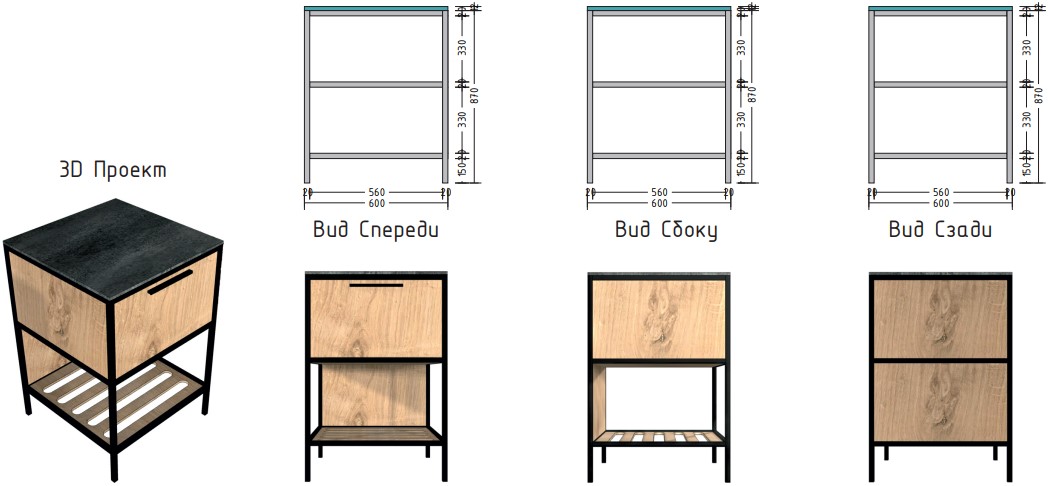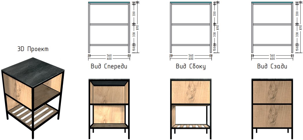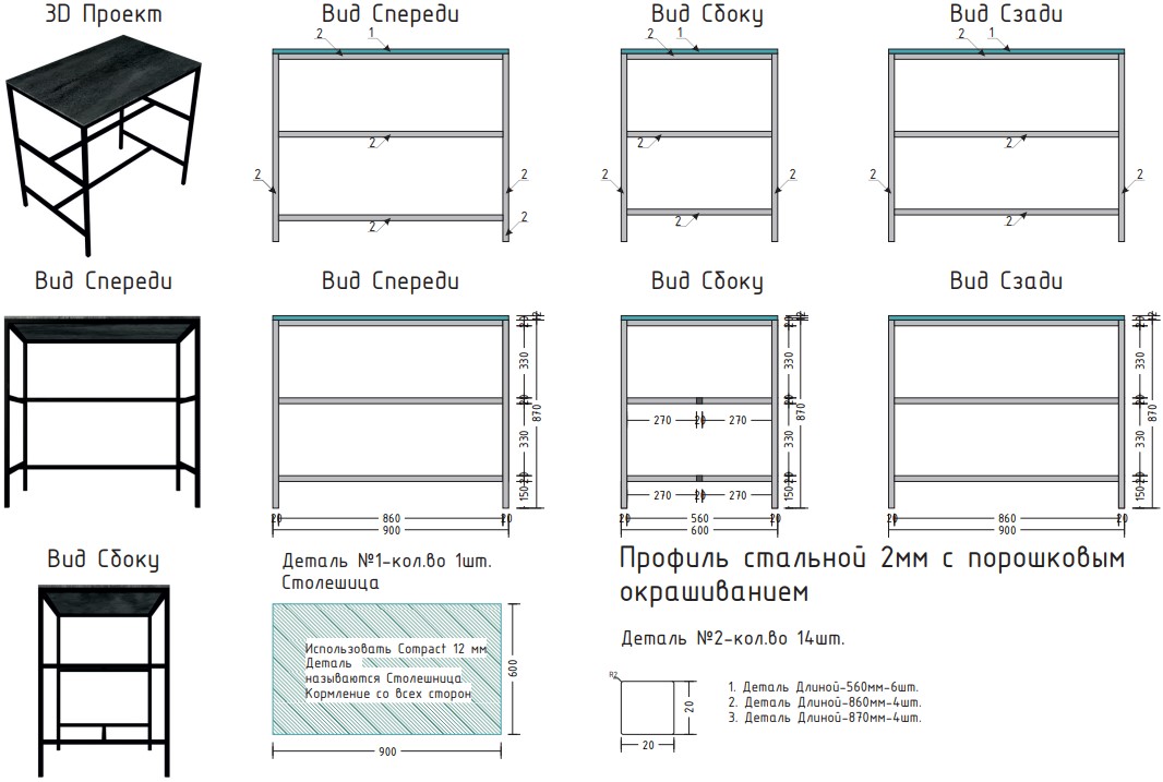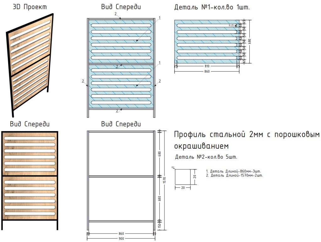 Выполнена из стального профиля черного цвета с порошковым покрытием, которое обеспечивает устойчивость к появлению коррозии и перепадам температуры.
